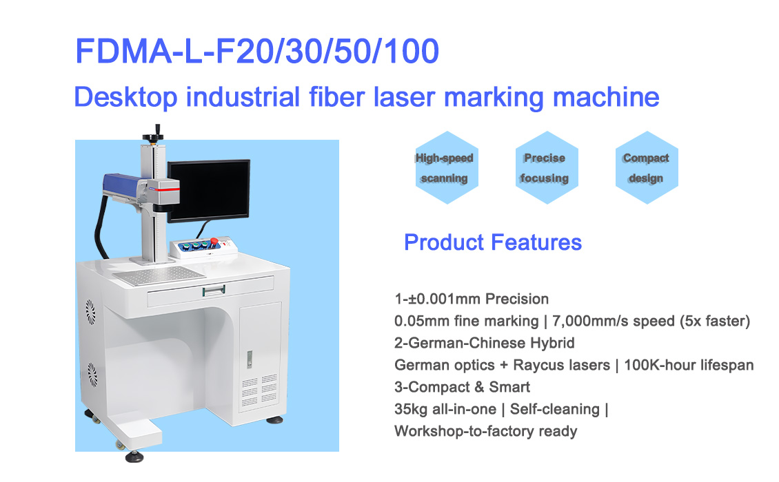 The FDMA Series desktop fiber laser marking systems deliver high-speed, permanent marks on both metals and non-metals. With models ranging from 20W to 50W, these CE-certified machines provide the perfect balance of precision, speed, and reliability for industries from jewelry to automotive.