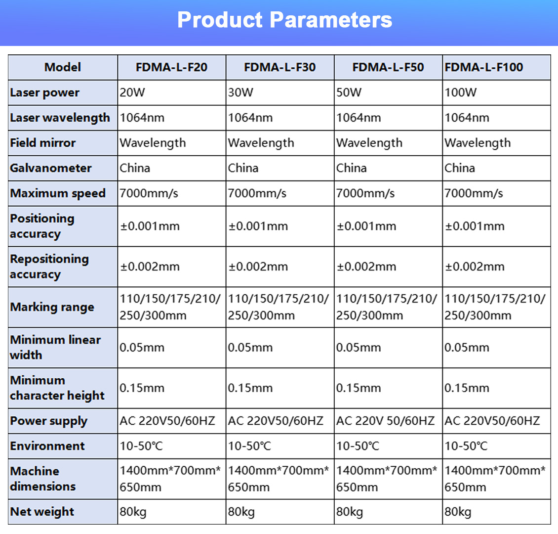 The FDMA Series desktop fiber laser marking systems deliver high-speed, permanent marks on both metals and non-metals. With models ranging from 20W to 50W, these CE-certified machines provide the perfect balance of precision, speed, and reliability for industries from jewelry to automotive.