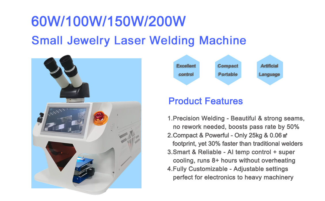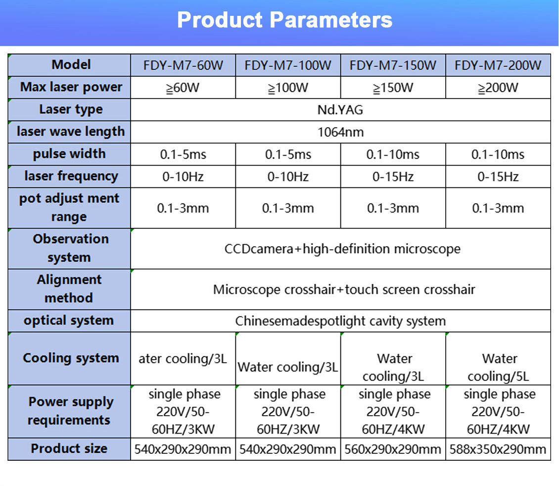 The FDY-M7 series (60W/100W/150W/200W) is a compact, industrial-grade pulsed laser welding machine designed for jewelry, stainless steel, and small hardware accessories. Featuring a YAG pulsed laser, imported optical system, and built-in water cooling, this desktop device delivers high-speed, precision welding with noise-free operation and minimal heat distortion.