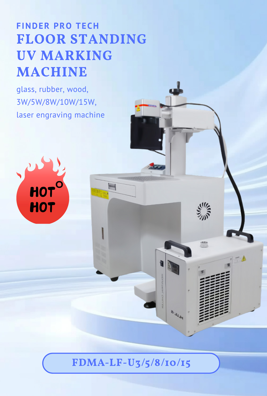 Finder Pro Tech’s floor standing UV marking machine is designed for efficient and fine marking needs. It has a compact body, does not take up space, is easy to move, and the aluminum operating table has standard scale holes for easy fixing and precise positioning.